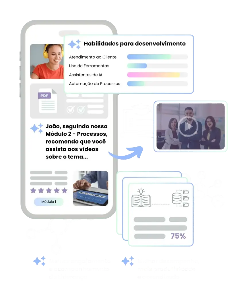 Com esta solução de IA plug & play da Bowie é possível, disponibilizando vídeos, conteúdos escritos ou em áudio e acompanhando todo processo de aprendizado dos seus profissionais.